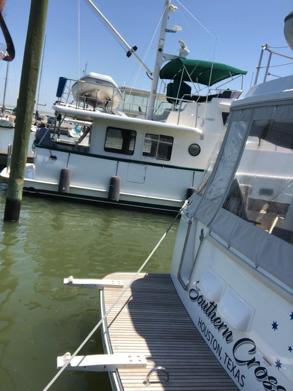 These new owners have a lifetime of sailing. They needed to transition to a power boat with systems they were not familiar with. So we started at the stern when he stepped aboard and worked our way around the boat. This VIDEO is a sister ship to the boat we toured but it helps to visualize when you look at the screen shots we share with you below. Ask Captain Chris about a FaceTime boat tour. Above deck and below.