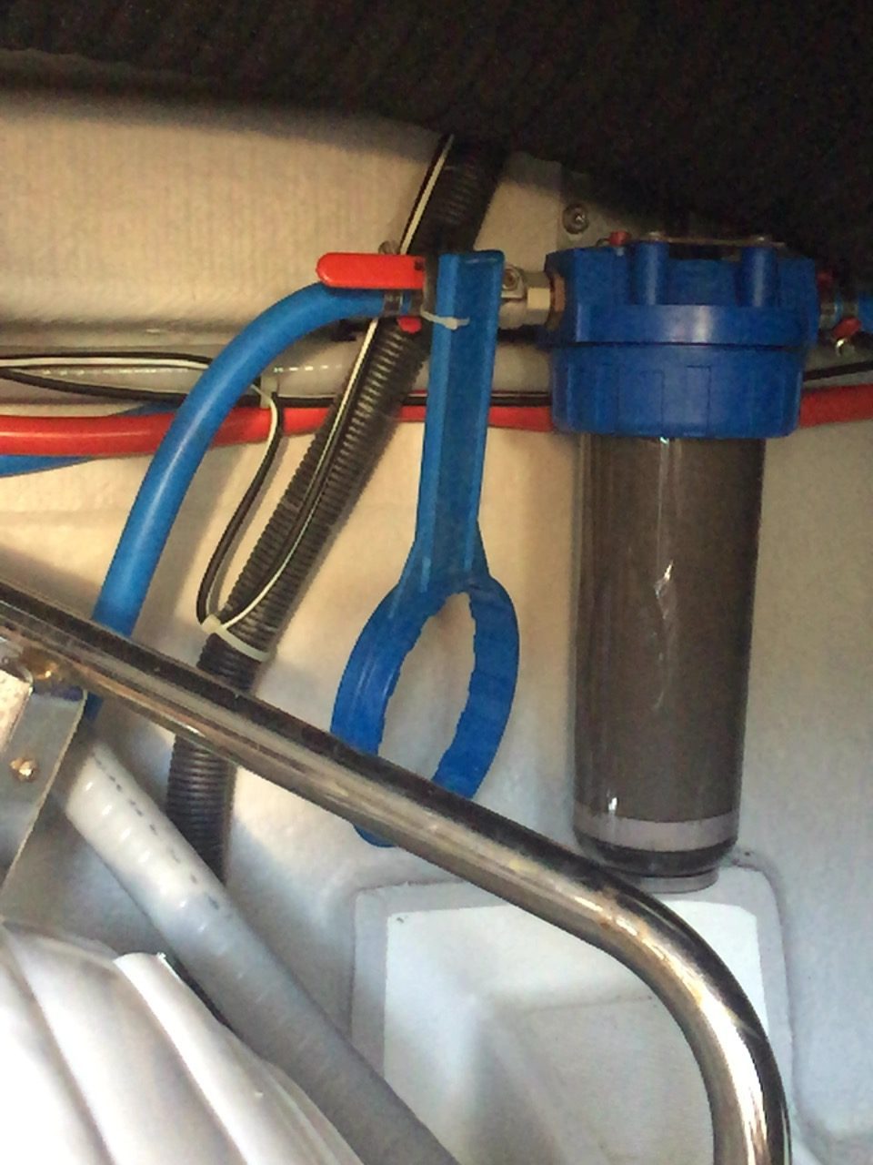 - Macerator pump overboard. We could hear it but not find it. Need a deep dive with stronger flashlight to confirm sea cock is closed.