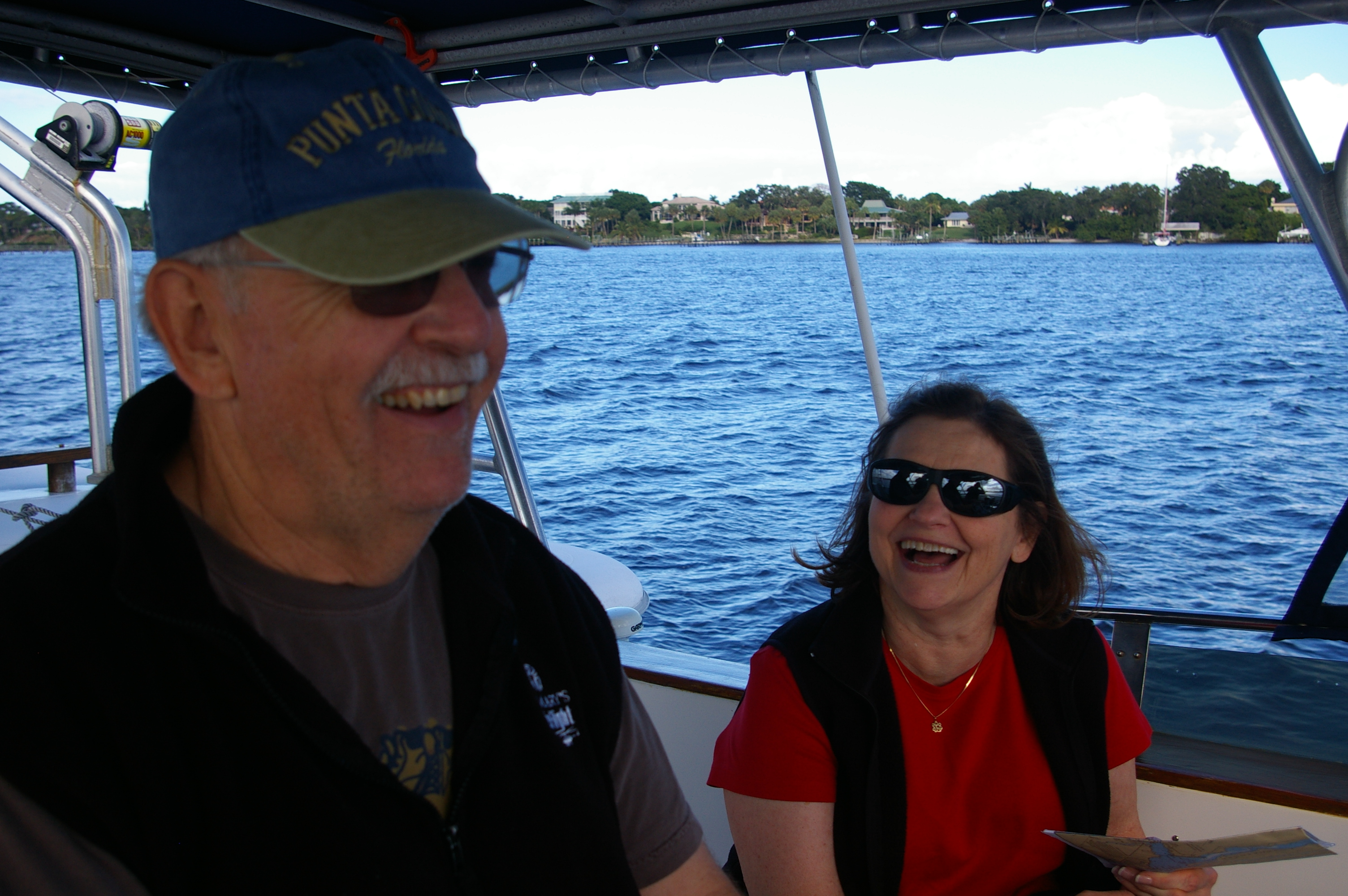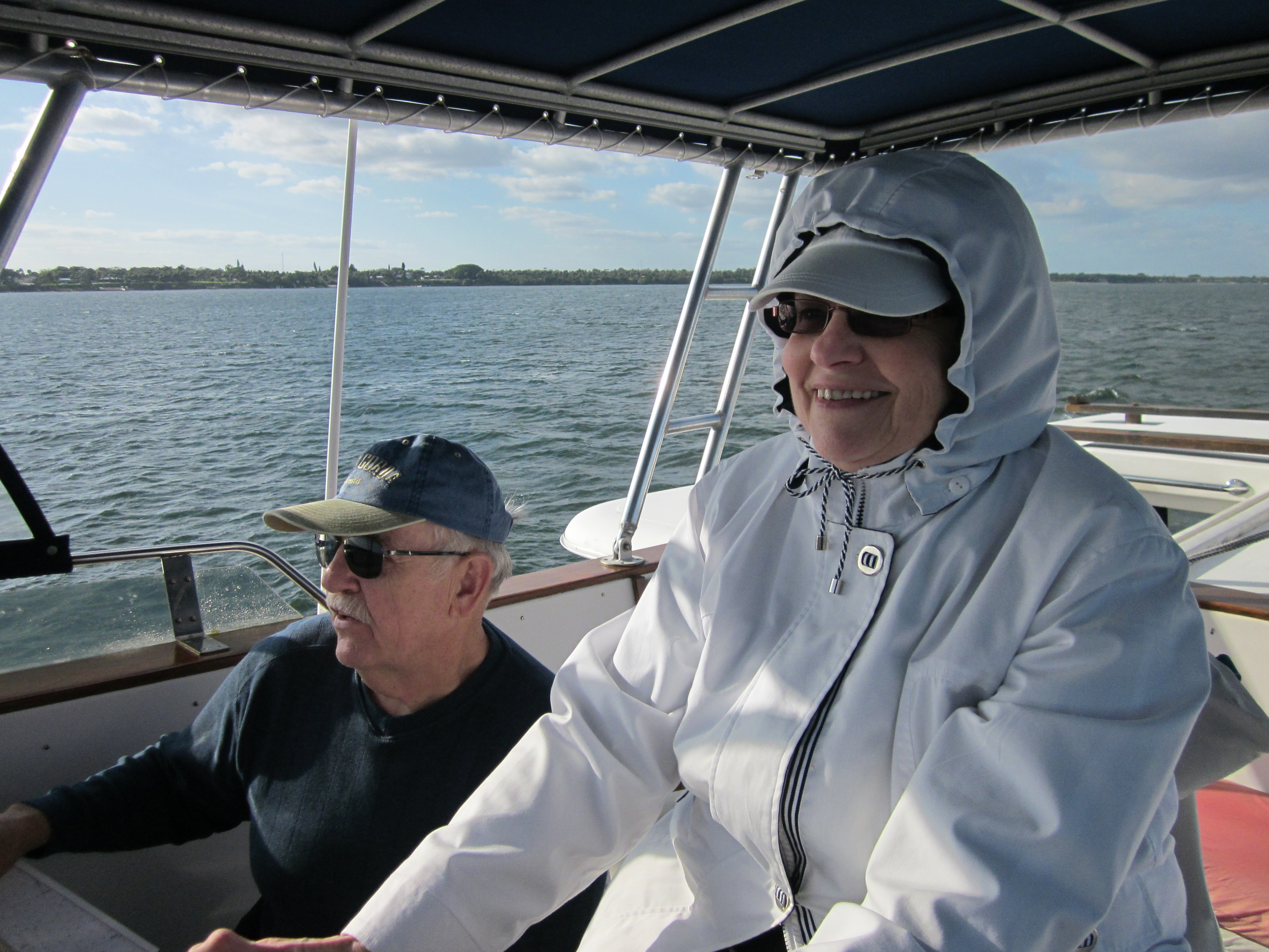 We met this Indiana couple at the annual northbound AGLCA Loopers’ Rendezvous in Norfolk, VA last May. When they booked a trip aboard our 44 foot Training Trawler SANDY HOOK for a winter week of training they hoped for sunny Florida weather and they weren’t disappointed. Wind, on the other hand, was in full swing!