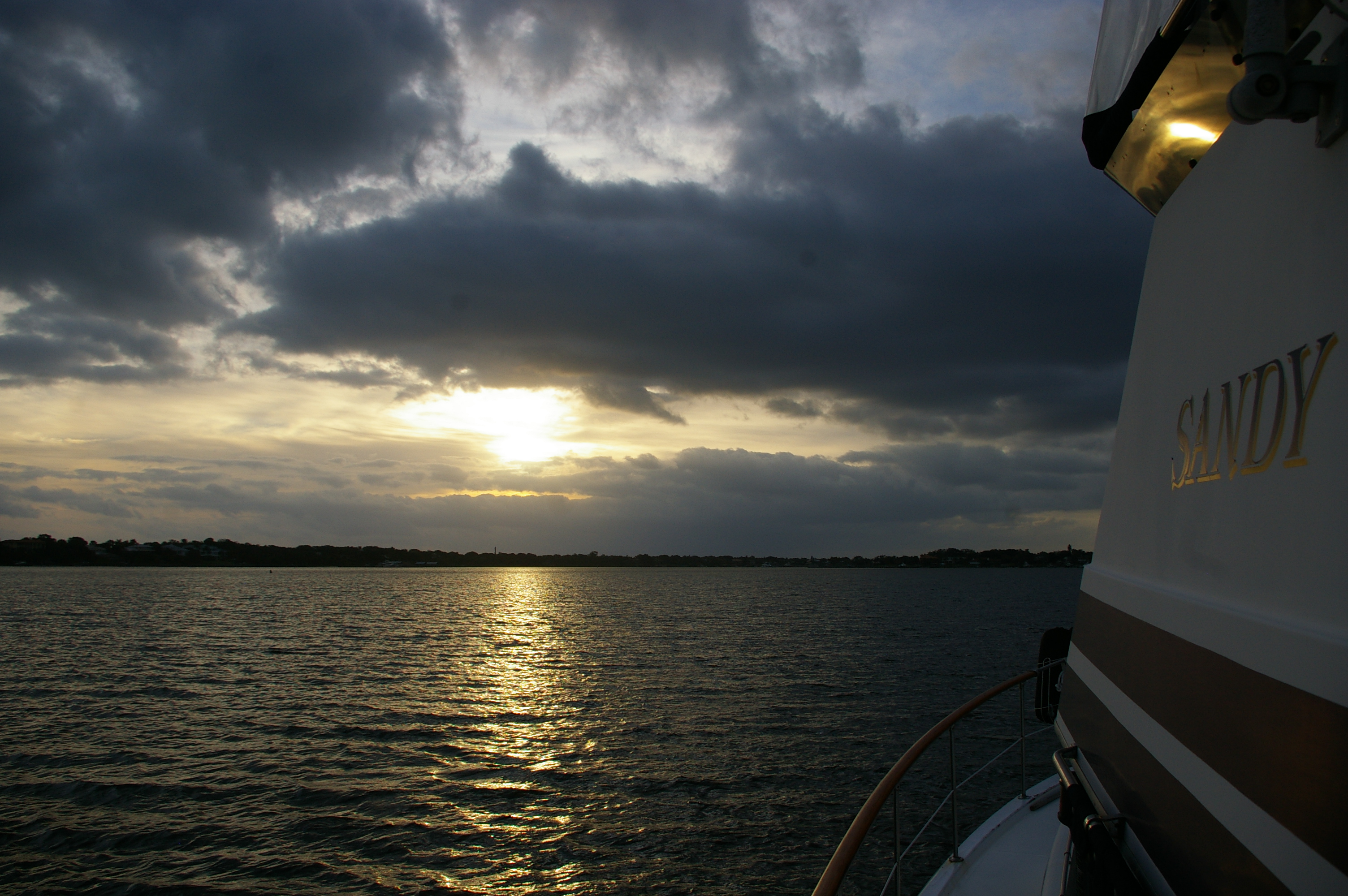 Picking out the lighted navigation aids and marking off our notes as we progress, we are a very focused team. So intent on our goal we almost miss the skinny fingers of light blue stretch up into the night sky, bringing the colors we know as sunrise. The winds have calmed creating a mirror slick water surface. Before we even realize it we no longer need the searchlight to find our next markers. Without much fanfare the sun has joined us on our journey home. What a difference a day makes.