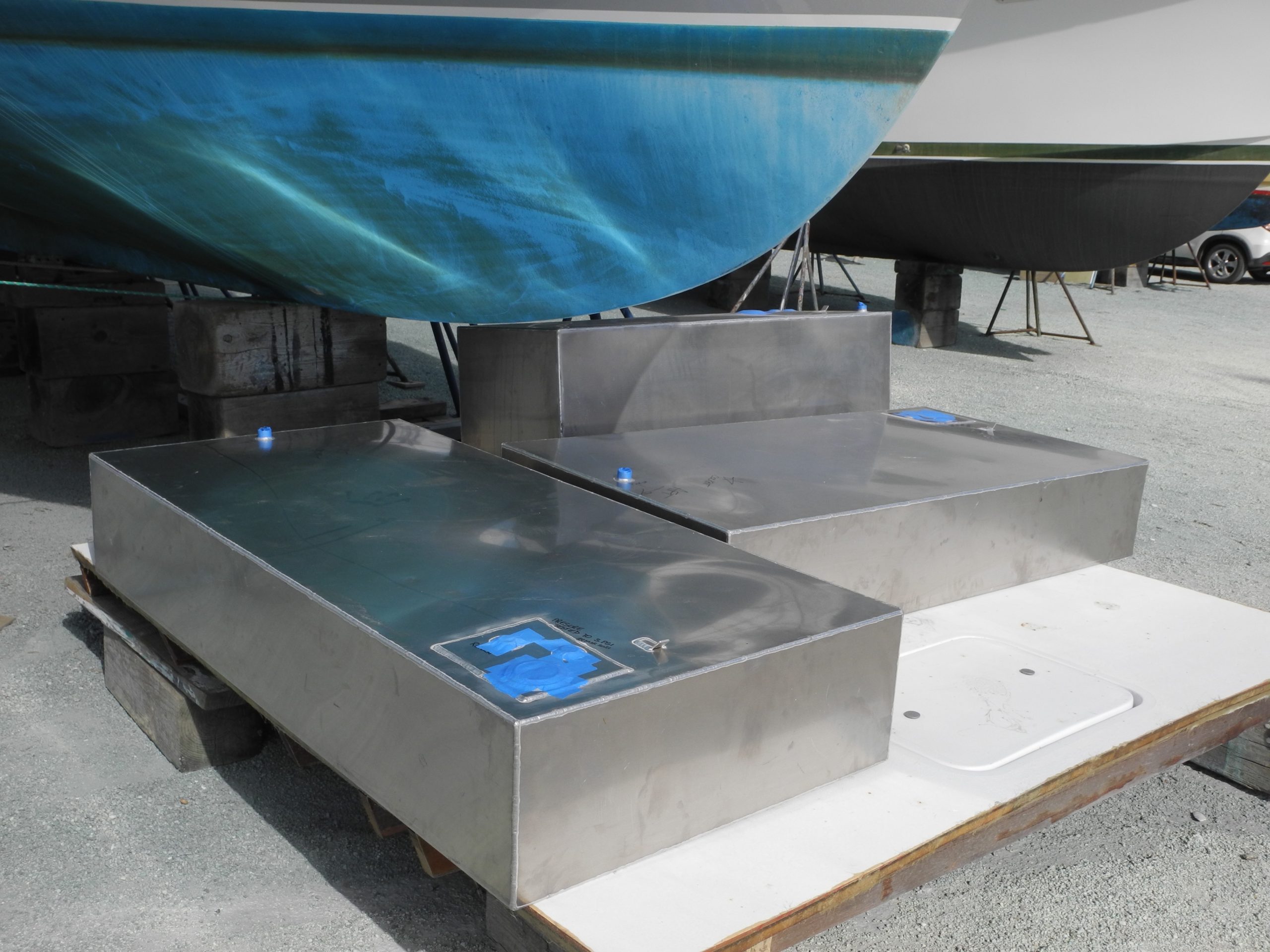 - Look at the three new fuel tanks that were crafted to fit in this specific hull design. (Before you get too excited about a fuel tank replacement project, please read this article.)