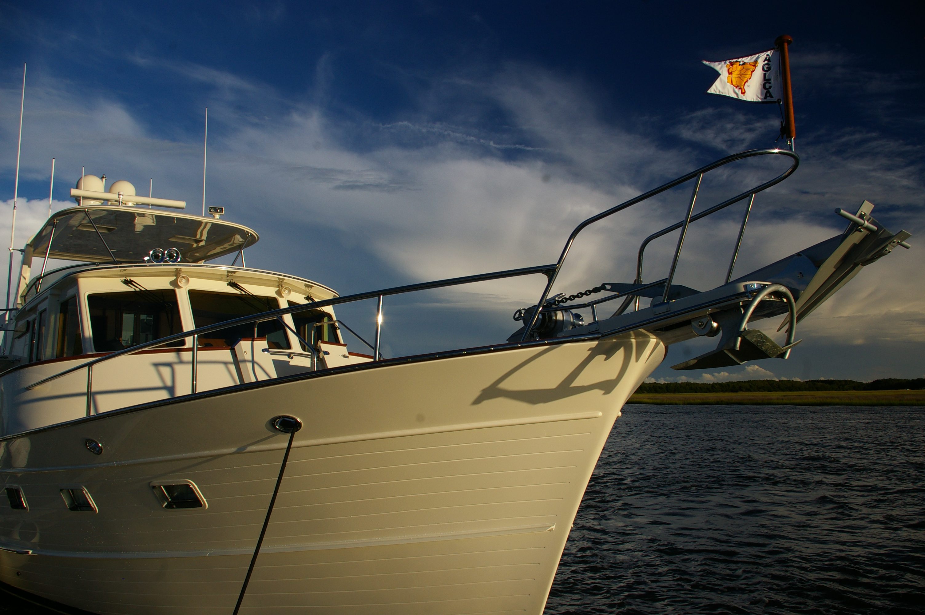 We started by helping them both to understand everything below deck: anchor windlass, air conditioners, inverter, toilet systems, navigation electronics and of course the engine room with twin Cummins and an Onan generator. The winds continued howling so we spent more time with ground school and systems above deck.