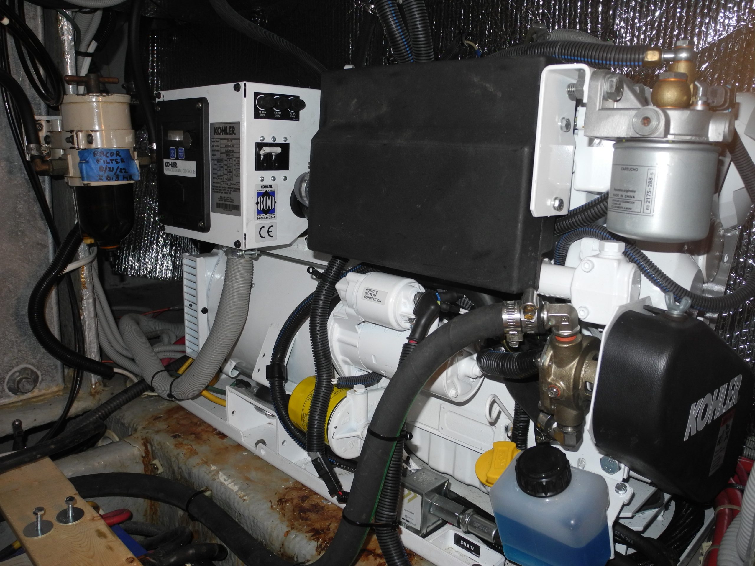 Back down into the engine room, we looked over the generator and everything appeared OK. Remember, I am training new owners so let’s go down the list. What can cause this problem on a brand-new generator with fewer than 40 hours? Here are a few of the most obvious possibilities:
