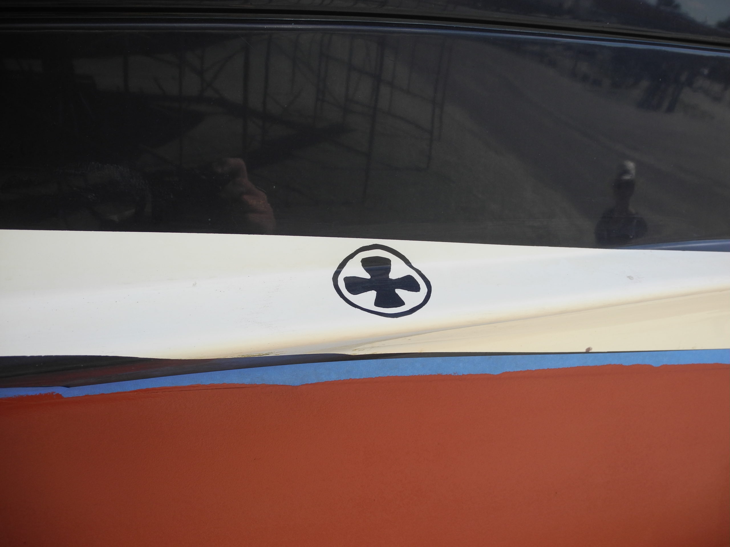 Generator engine exhaust at waterline to reduce fumes in cockpit and stabilizer indicator for boatyard.