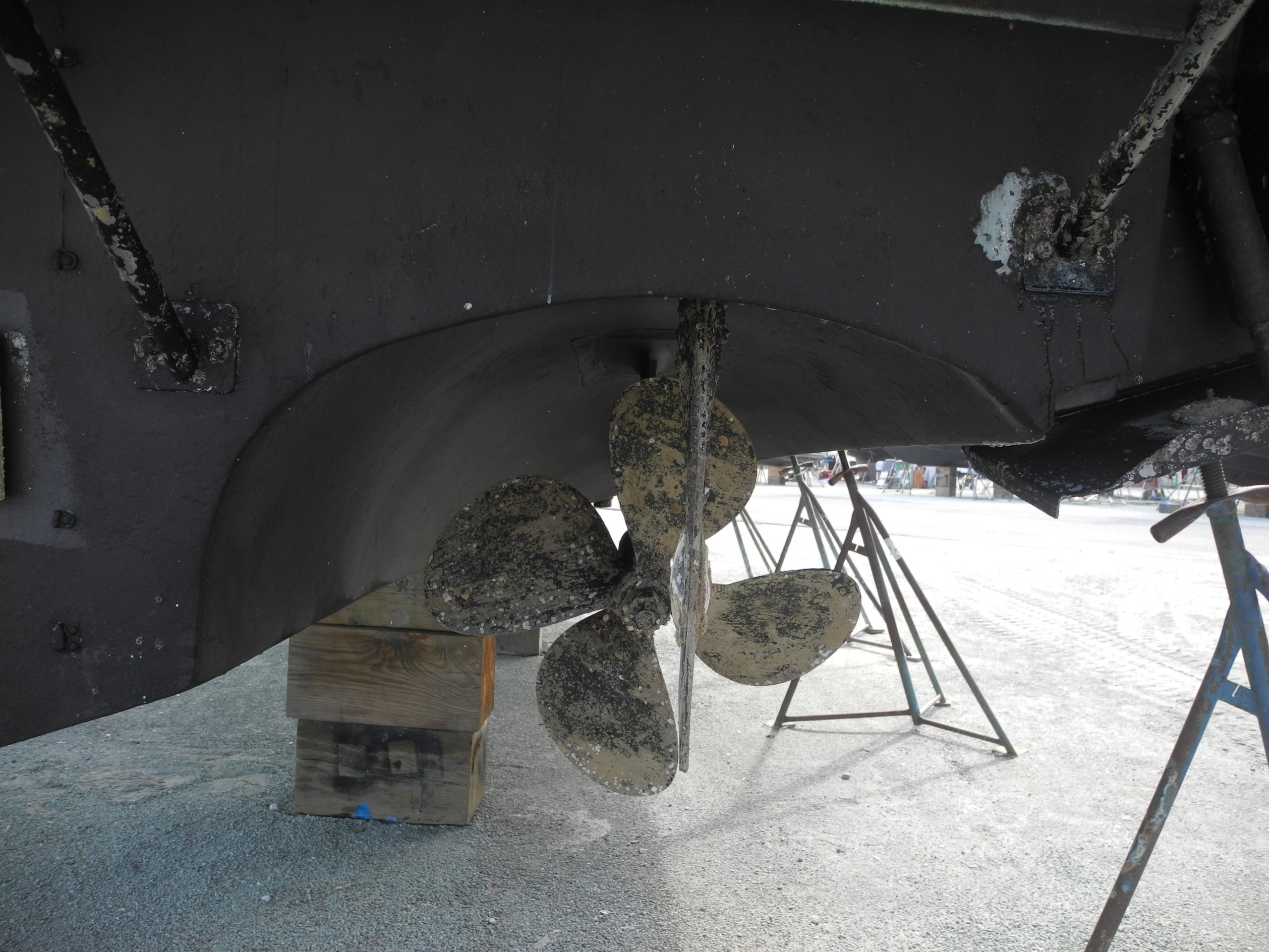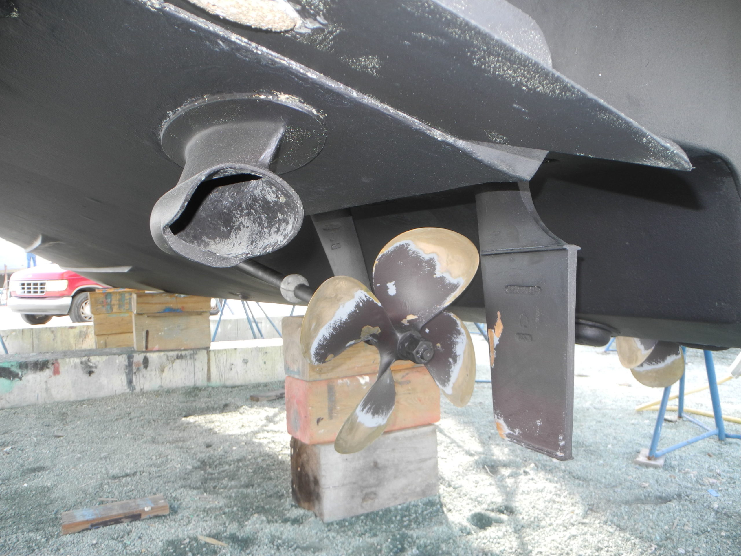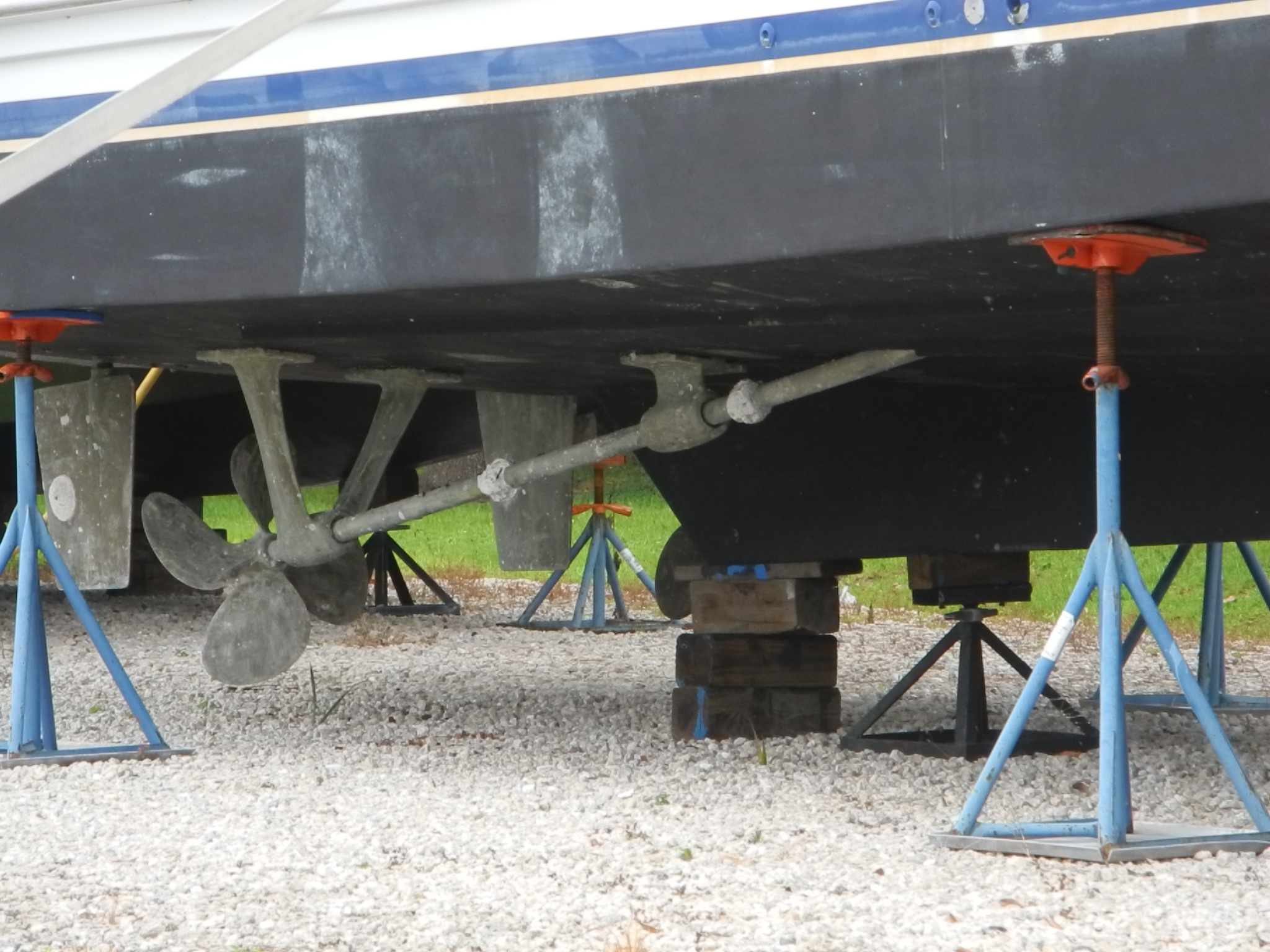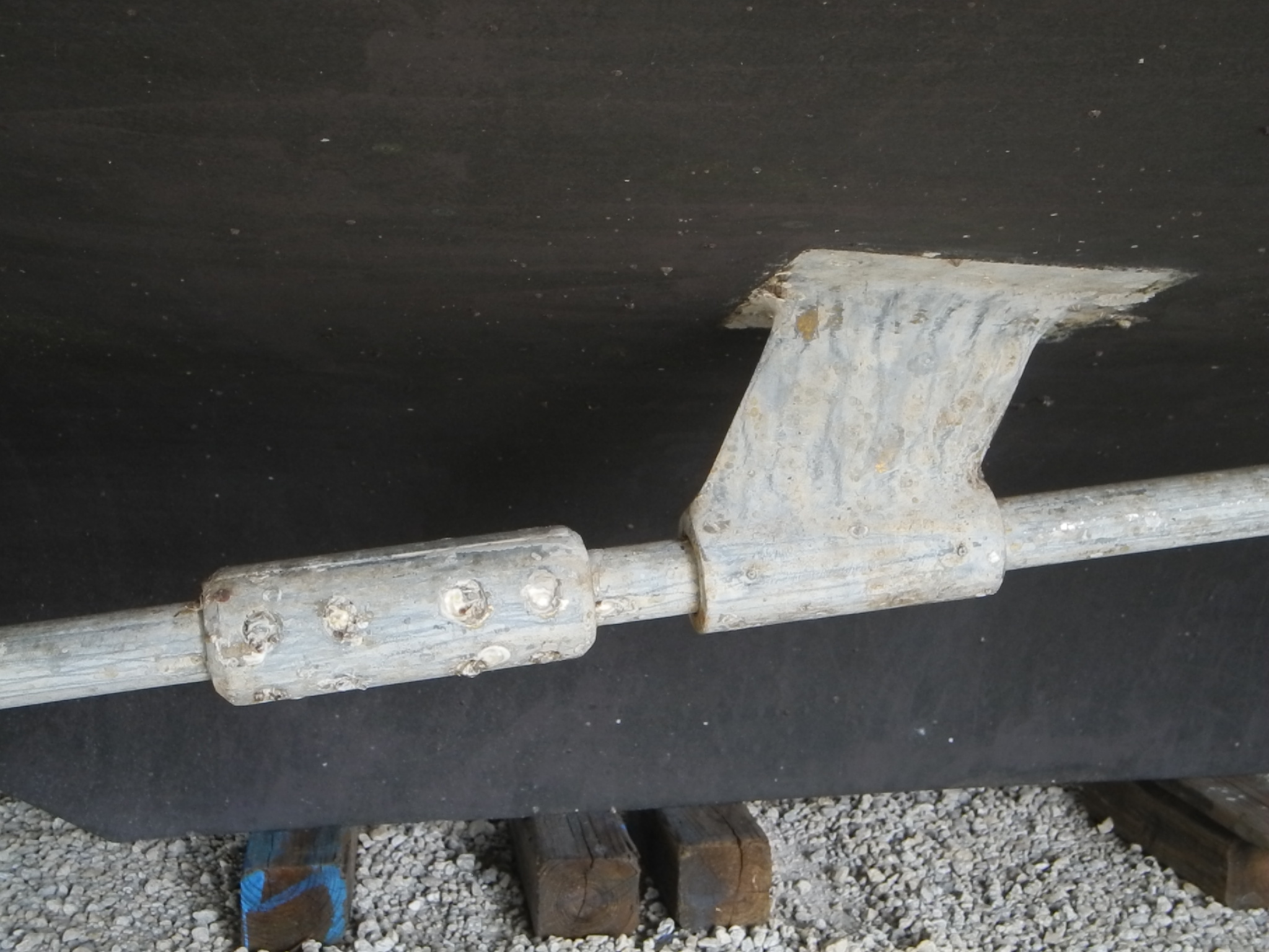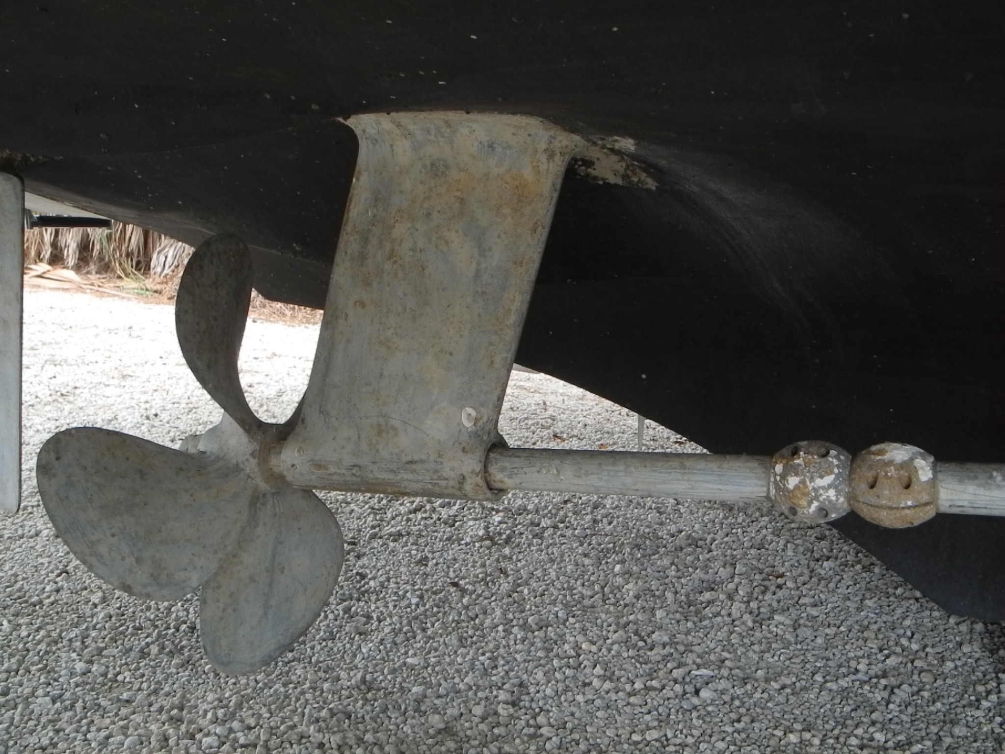 Primary strut V style at the propeller end, NOTE the shaft zinc.