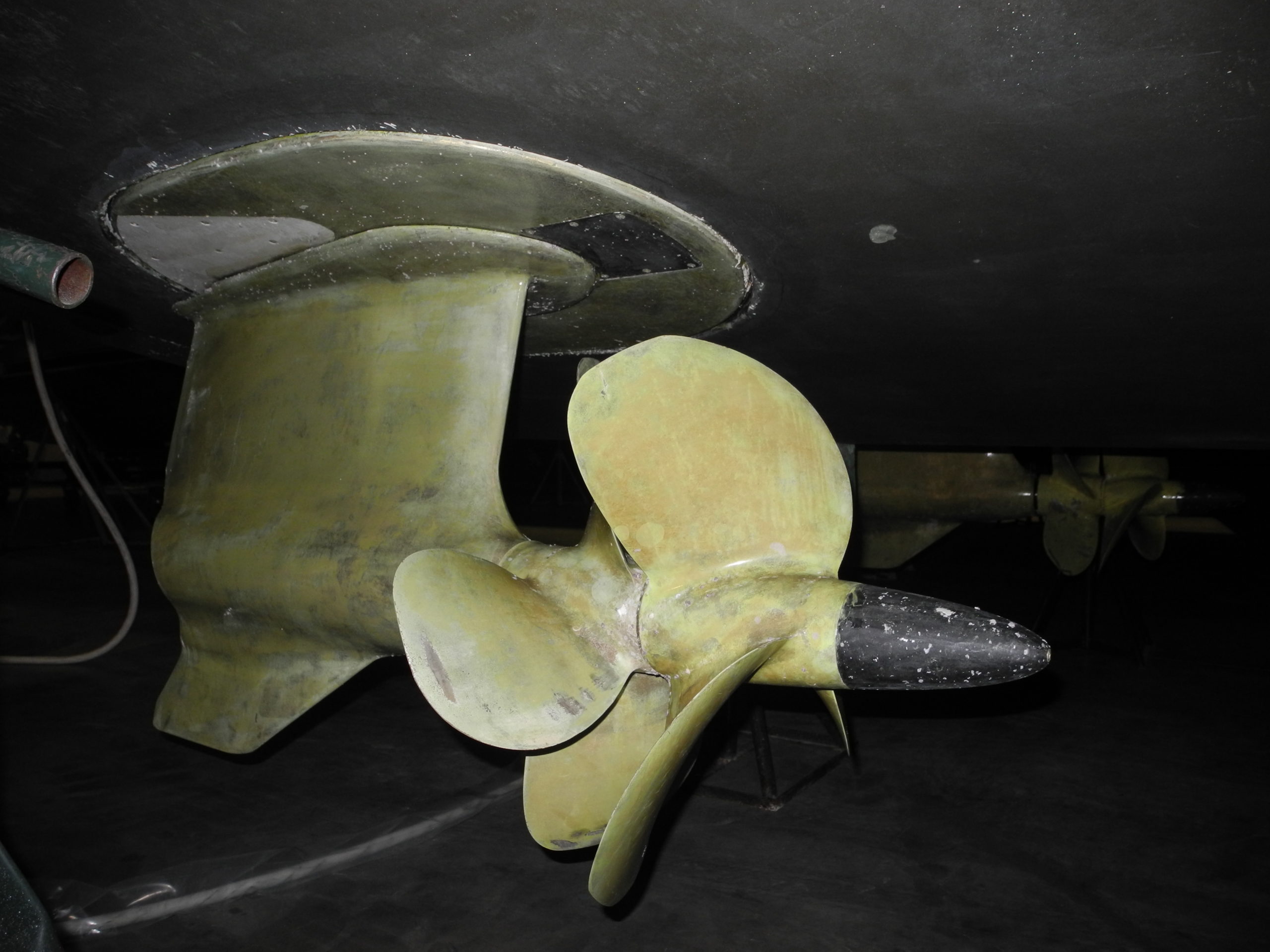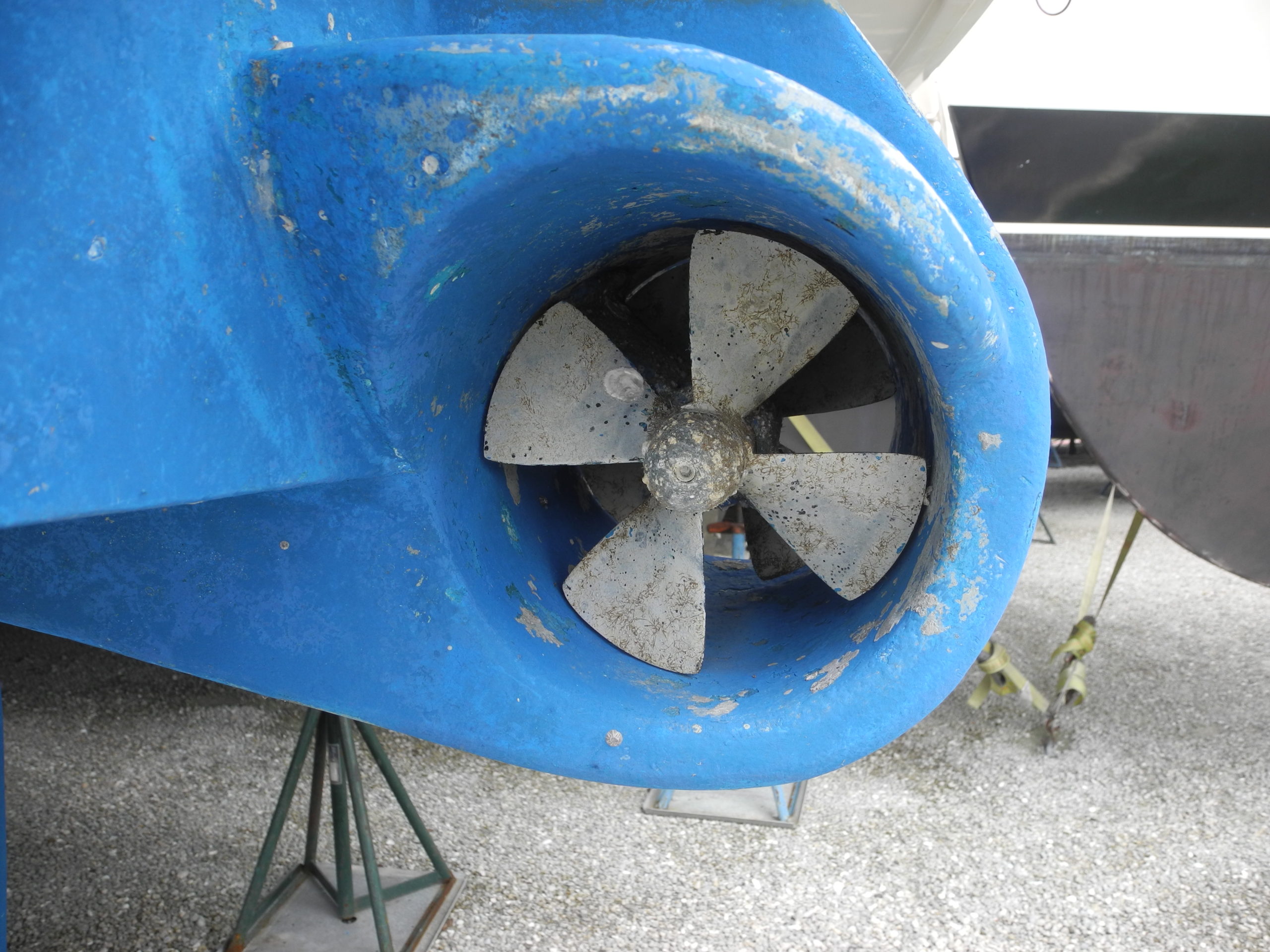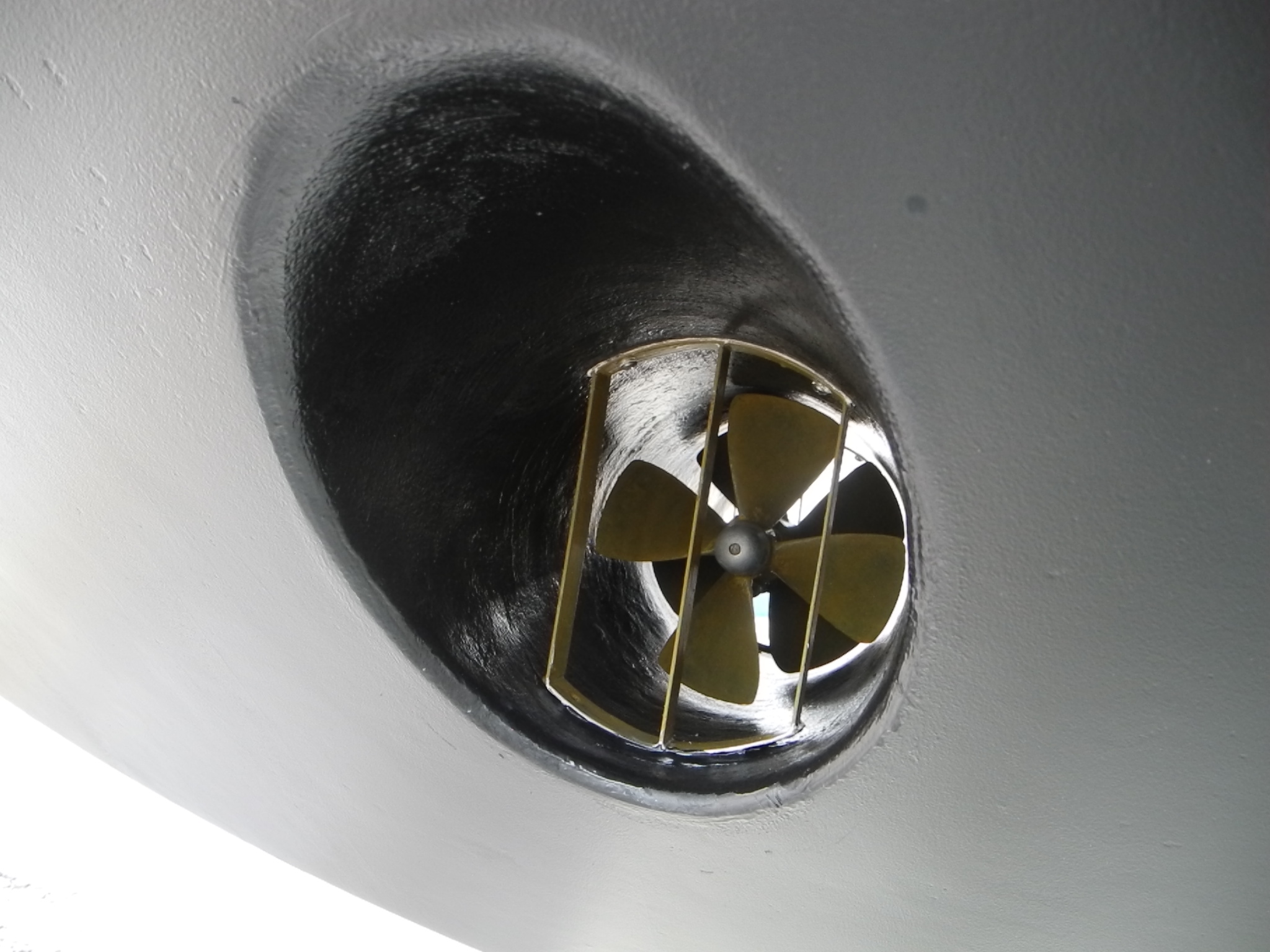 A direct side view of the stern thruster.